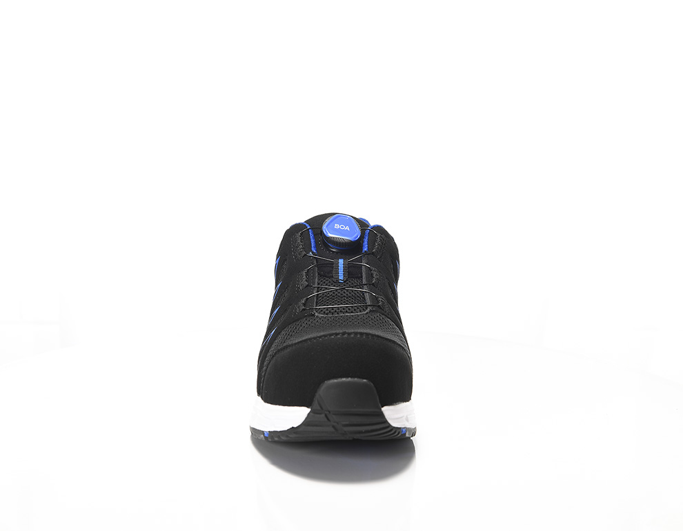 JORI safety shoe SPEEDY BOA black-blue Low ESD S1P The SRC-certified jo_SPEEDY BOA black-blue Low ESD S1P from Jori by ELTEN consists of mesh material and microfiber. This means that enough air gets to the feet, which together with the breathable textile lining ensures a pleasant climate in the shoe at all times. Plastic caps and metal-free penetration protection mean that the feet are protected. The jo_DYNAMIC outsole made of rubber and EVA can also withstand a lot. A special feature: thanks to the innovative BOA® Fit System, the safety shoe fits securely and precisely on the foot in no time at all. The metal and leather-free and ESD-compatible unisex shoe is available in sizes 36 to 48. Equipment SPEEDY BOA® black-blue Low ESD S1P: