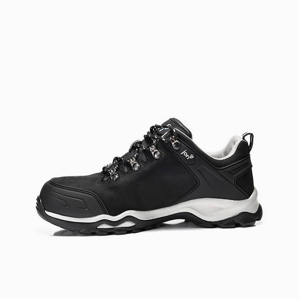 Black and white power pack Matt black, simple design with maximum safety equipment. The jo_POWERFUL black Low S3 combines external and internal qualities. The wearer's foot is protected from the ingress of moisture by a hydrophobic nubuck leather upper , a steel toe cap prevents dangers from falling objects and the metal-free penetration resistance in the sole protects against the penetration of pointed objects from below. The SRC certified RUBBER / EVA sole is very resistant. A breathable textile lining makes the jo_POWERFUL black Low S3 comfortable to wear. This JORI safety low shoe can be ordered in sizes 36 to 48.