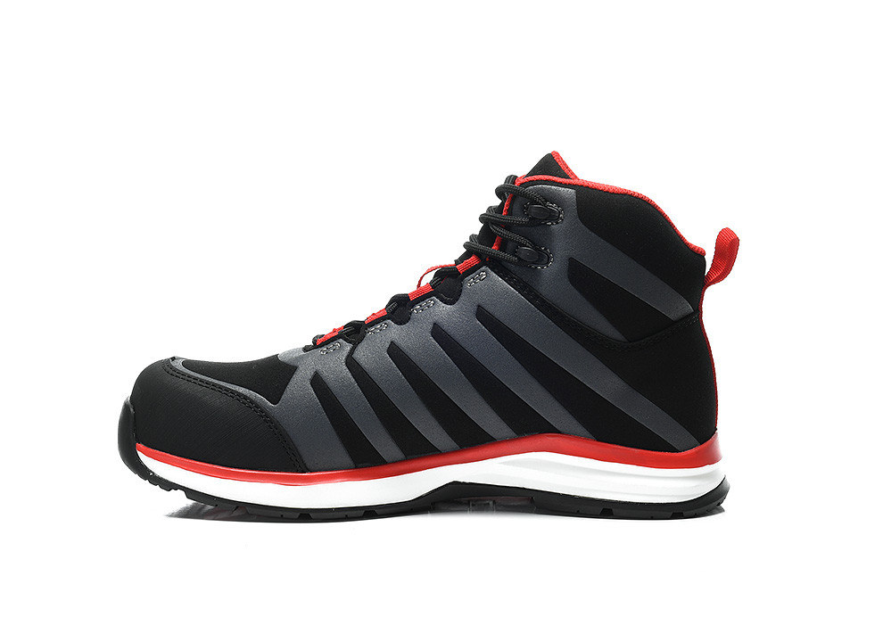 JORI safety boots jo_RAPID black red Mid ESD S3 The SRC-certified S3 safety boot jo_RAPID black red Mid ESD S3 from Jori by ELTEN protects the feet with a plastic cap and textile penetration resistance. At the same time, the jo_ATHLETIC outsole made of rubber and PU is extremely robust and comfortable at the same time. The upper made of hydrophobic microfiber can withstand a lot, as does the rubber overcap. The breathable textile lining ensures a good climate in the shoe. The completely metal and leather-free, sporty boot is available in sizes 36 to 48. Features - jo_RAPID black-red Mid ESD S3:
