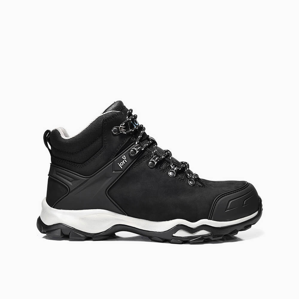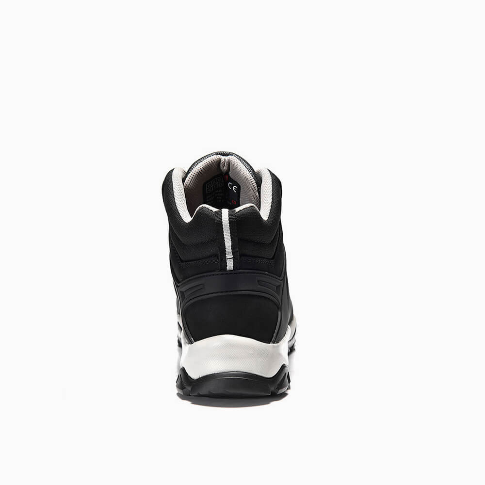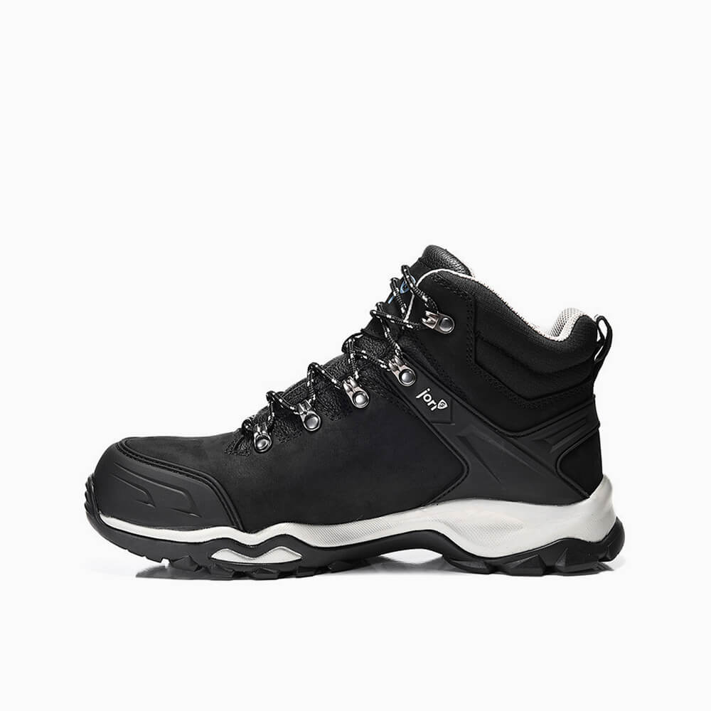 With the jo_POWERFUL black Mid S3 from safety shoe manufacturer JORI, the wearer does everything right. The chic black lace-up boot convinces with its slim design and excellent safety properties. The robust outer material made of hydrophobized nubuck leather is water and dirt repellent, the breathable textile lining ensures a comfortable fit. The shoe is protected from premature wear with the TPU overcap . A steel cap and the metal-free penetration protection prevent serious injuries from falling objects or objects lying on the floor. The coarse-tread outsole provides the necessary stability in rough terrain.