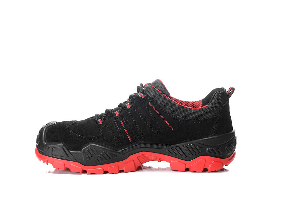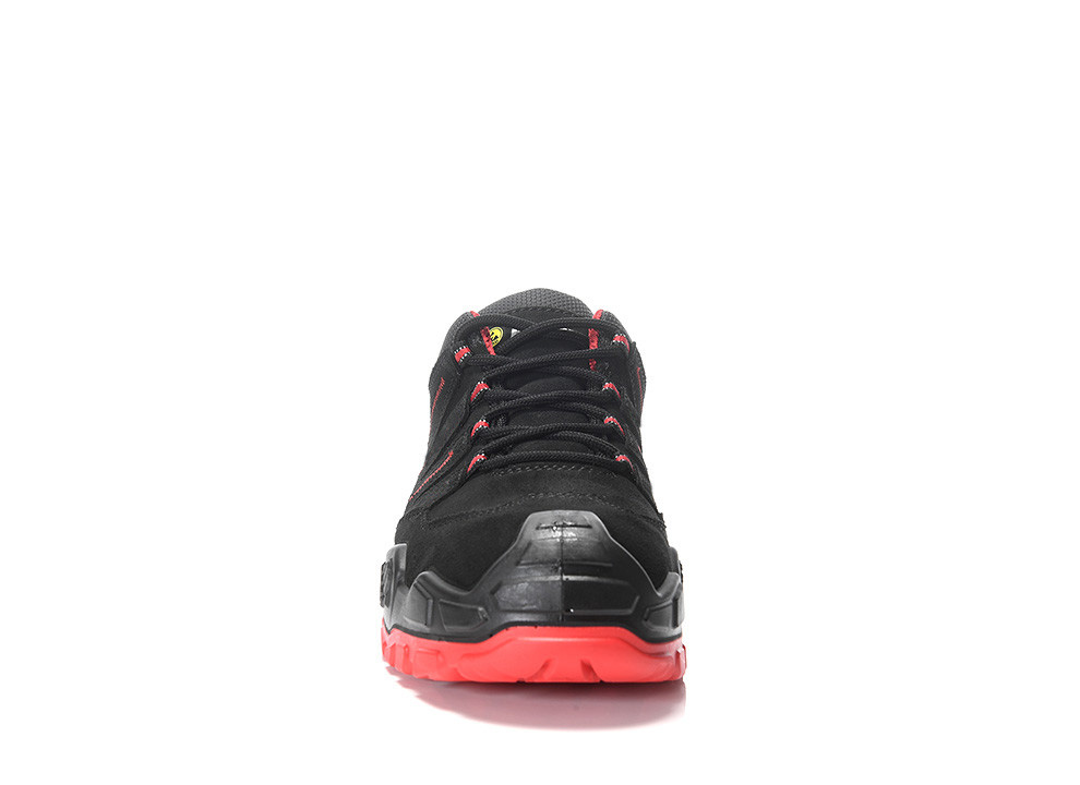 Tilers can tell you all about it – without proper toe protection, even the best safety shoe quickly looks worn and unsightly. It's a good thing we have our QUENTIN black-red Low ESD S3S, a fashionable all-rounder on the construction site. It features a PU scuff cap that reduces abrasion on the upper material. Furthermore, the CROSSWORKER PU/PU sole features a special frame construction with raised PU elements. These make the whole thing even more stable and provide the foot with a kind of "safe guide" when stepping and rolling. The deep profile also makes the safety shoe the perfect companion on wet and dry surfaces – indoors and outdoors. The upper material made of hydrophobic suede and microfiber with red decorative stitching and details gives the low shoe its sporty look. And its inner qualities are impressive, too. The breathable textile lining ensures a comfortable climate inside the shoe, the toes are protected by a steel toe cap, and the metal-free penetration protection prevents nails from penetrating. In addition, the ESD PRO black insole also allows for the handling of sensitive electronics, as it ensures the dissipation of static electricity. The QUENTIN black-red Low ESD S3S is available in sizes 40 to 48.