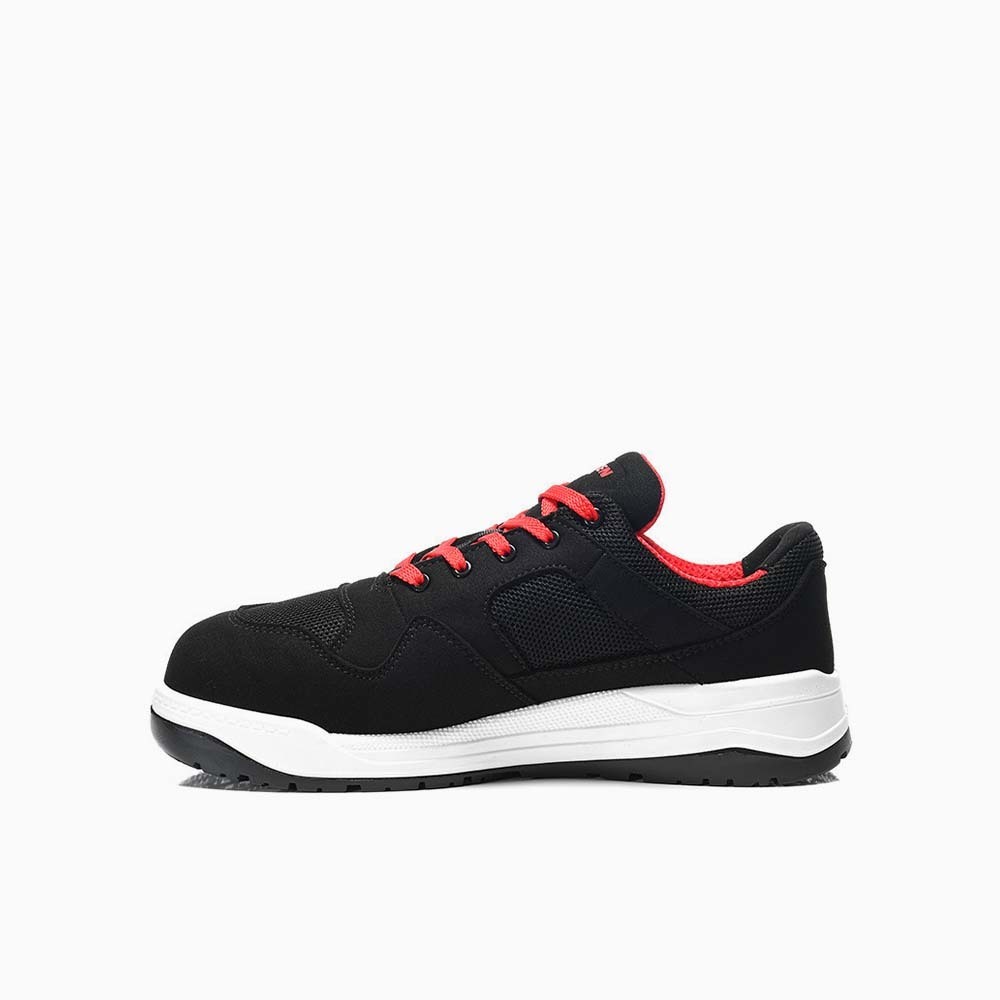 More power on the instep Once a fan of our ELTEN Lakers, always a fan of our Lakers. You can understand that, because the LAKERS M black Low ESD S1P also has a lot that makes it a real favorite safety shoe. Very sporty in design, thanks to its double PU outsole, sure-footed and excellent cushioning, cool black-white-red look and also very manoeuvrable and very safe. What's more: the SRC-certified safety shoe has what is known as metatarsal protection. An advanced impact protection that covers the instep of the foot. This makes the foot even safer overall. You can't see it because it works on the inside, but you can feel it when something falls on the middle foot. In other words, you don't actually feel anything. These Lakers are comfortable to wear anyway, because the upper material made of microfiber and mesh is very comfortable and elastic. The lining made of breathable textile ensures wearing comfort and a consistently good interior climate. Metal-free penetration protection makes the shoe nice and light and protects it against sharp objects at the bottom. And the plastic cap is great for securely covering the front toe area. The ESD-compatible shoe is available in sizes 39 to 49. Equipment - LAKERS M black Low ESD S1P: