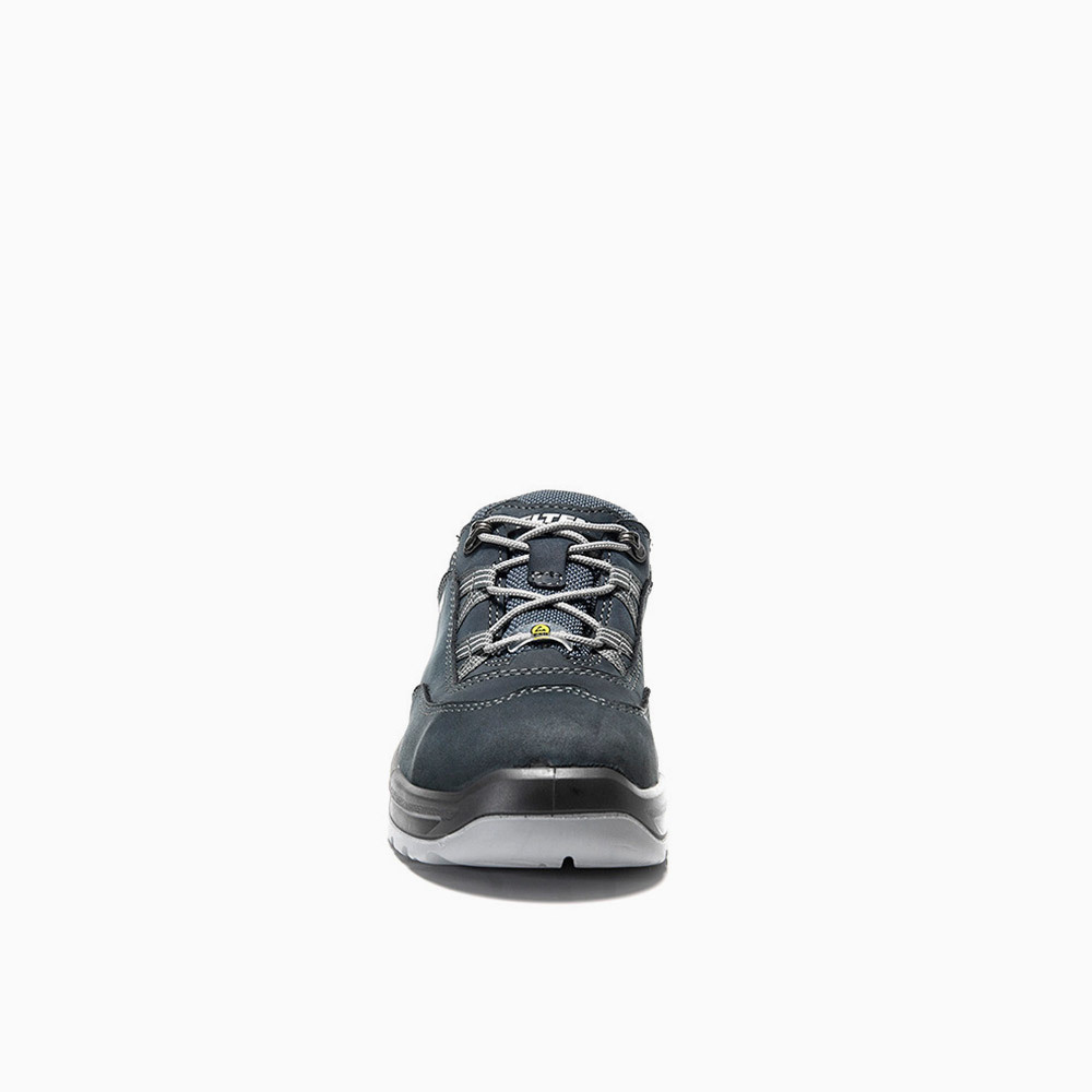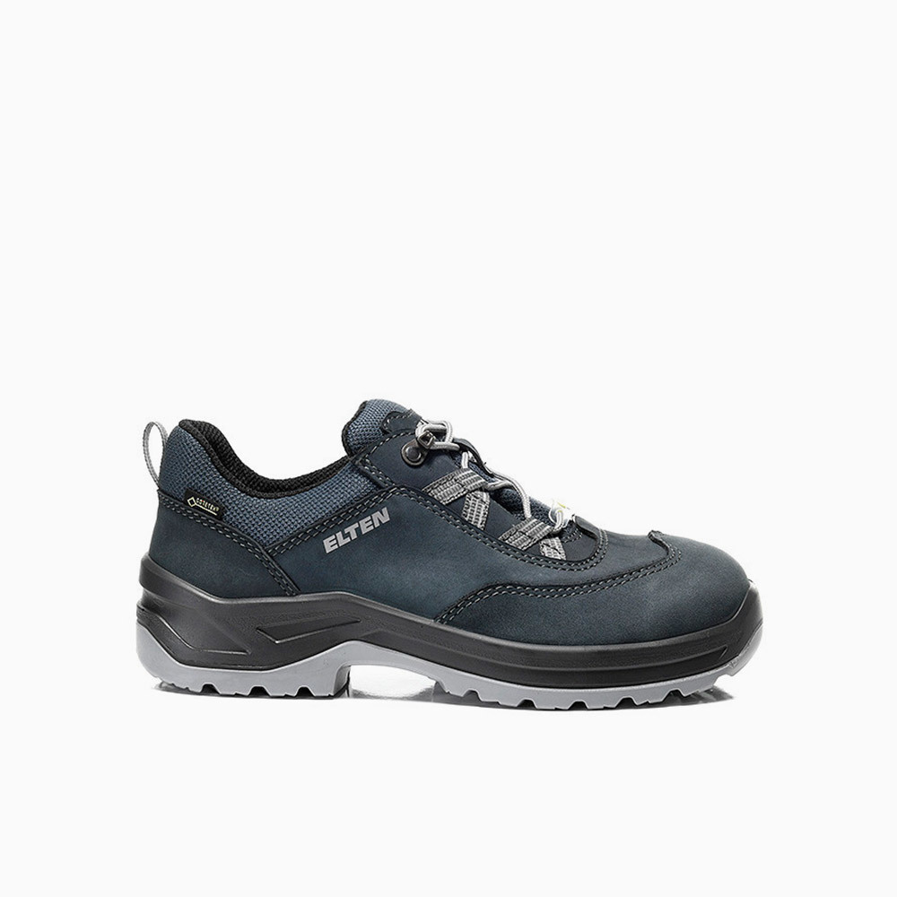 The LOTTE GTX blue Low ESD S3 is specially made for women's feet - and the perfect companion for outdoor use. The upper material made of hydrophobic nubuck leather and the textile material CORDURA® is extremely durable as well as water and dirt-repellent. In addition, the GORE-TEX inner lining reliably prevents the ingress of water and at the same time ensures a pleasant temperature balance in the shoe. Wearing comfort is a top priority for the matt blue women's safety shoe - but at the same time safety is not neglected: steel toe caps and metal-free penetration resistance protect the feet from dangers from above and below. In addition, the SRC-certified PU/PU outsole TREKKING LADYfor a secure hold. The ESD-capable LOTTE GTX blue Low ESD S3 is available in sizes 34 to 42.