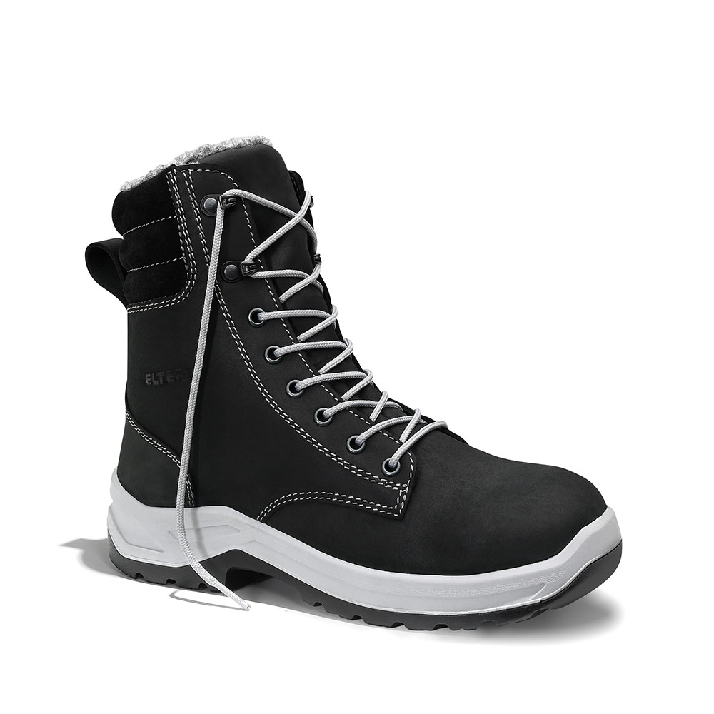 The LILLY black High ESD S3 is a safety lace boot that is specially tailored to the needs of female wearers.ÂÂ The high-cut, ESD-capable women's model protects the foot with a metal-free penetration resistance and a steel toe cap.ÂÂ Hydrophobized nubuck leather and microfibre as the upper make the shoe robust and durable, even outdoors.ÂÂ This is supported by the SRC certified PU / PU outsole TREKKING LADY, which provides extra grip on uneven surfaces.ÂÂ The soles of this series are also pulled up at the toe and have an S-line profile arrangement, so that the foot is supported in its natural rolling motion.ÂÂ The wearer's foot stays protected from the cold thanks to the cozy warm lining.