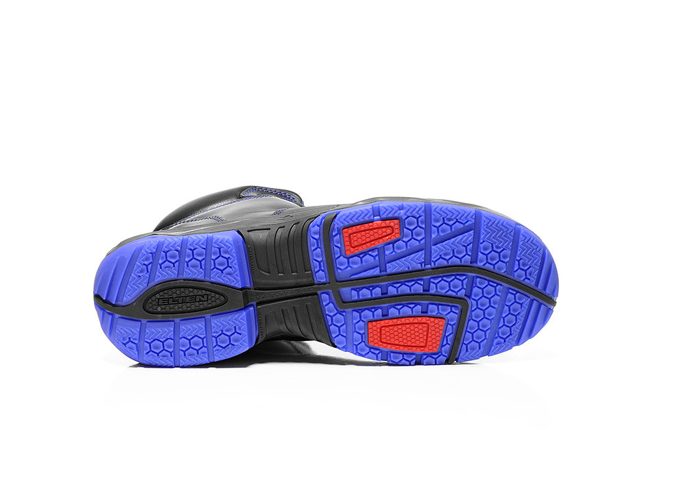 It looks great in black with blue accents - the ESD-capable safety boot REACTION blue mid ESD S3 from the series ELTEN DIMENSION PRO.ÂÂ The most interesting part of the protective equipment is the sole of the same name.ÂÂ It has a "honeycomb", non-slip design, but at the same time also two contact surfaces for easy turning from a standstill. No contradiction, because the safety boot is intended for upright / leno workstations on hard, often smooth industrial floors.ÂÂ However, this safety boot has a number of other advantages and can be used indoor as well as outdoor.ÂÂ Cowhide is a durable, moisture-repellent upper, textile lining regulates the shoe climate, a steel toe cap protects the toes.ÂÂ Improved visibility even in bad light causes reflective material.ÂÂ The abrasion-resistant tip protection prevents premature wear of the safety boot itself.ÂÂ An advantage of the model is its certification for orthopedic changes according to DGUV Rule 112-191.ÂÂ The safety boot REACTION blue Mid ESD S3 is available in sizes 36 to 52.