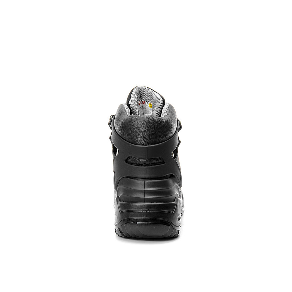 The ESD-capable RENZO Biomex ESD S3S is a sporty outdoor safety boot from the ELTEN BIOMEX PROTECTION© series. It features the SAFETY-GRIP PU/PU sole with a coarse tread for excellent slip resistance and is available in sizes 36 to 50. The robust, hydrophobic leather upper is durable; a PU toe cap prevents premature wear of the upper leather at the toe cap. Steel toe caps protect the foot from impact and pressure injuries, and a metal-free midsole provides penetration protection. The BIOMEX PROTECTION© cuff prevents twisting and stabilizes the ankle joint in its natural range of motion. The RENZO Biomex ESD S3S safety boot is approved for orthopedic adaptations according to EN ISO 20345 (DGUV 112-191).