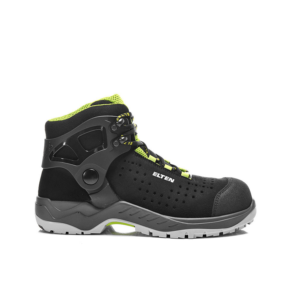 Awarded the Plus X Award for superior quality and functionality, the TOMMASO green Mid ESD S1PS safety boot is a truly unique model from ELTEN. This airy boot features the Biomex Protection ankle cuff. This protects the ankle from injuries caused by twisting, slipping, and falling. This lightweight and delicate ankle cuff supports the foot's natural movement and only intervenes when stabilization is needed.