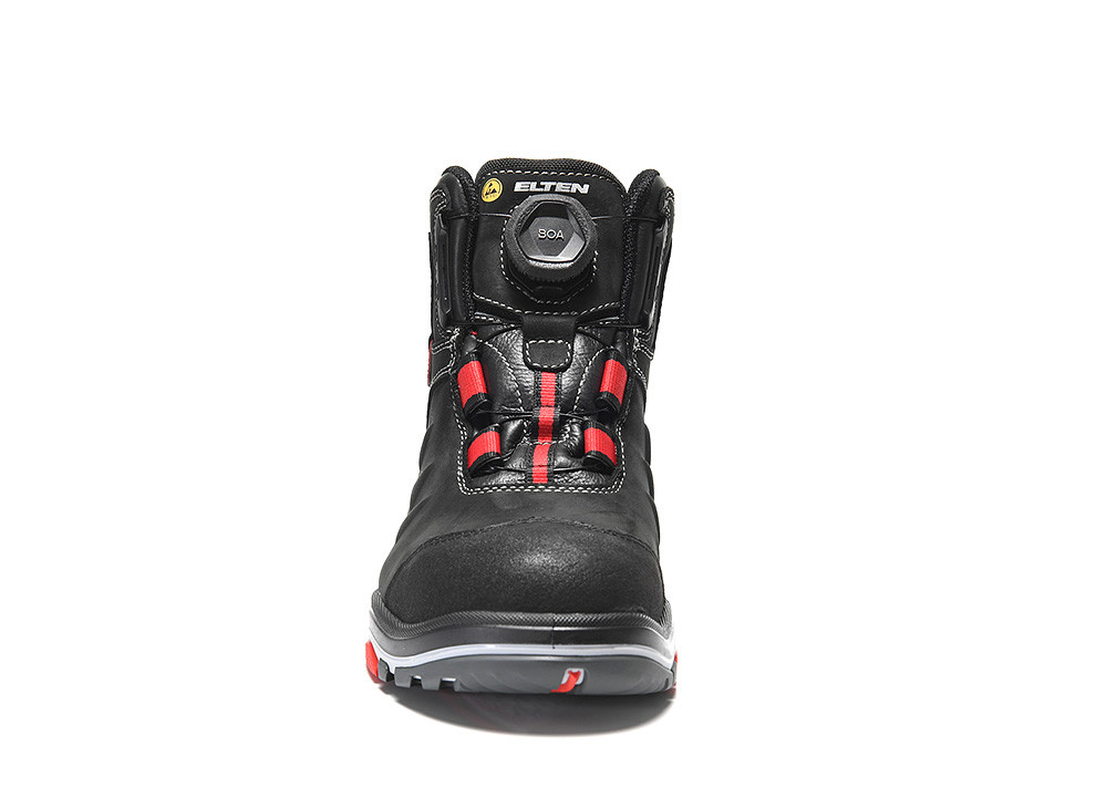 The safety boot for every situation Sporty design meets a wide range of security features: the TILL BOA® EA Mid ESD S3 from the ERGO-ACTIVE series by ELTEN impresses with its steel cap and metal-free penetration resistance when things get tough at work. The upper material made of hydrophobic cowhide and an abrasion-resistant tip protection is very resistant and robust. The BOA® Fit System ensures both a perfect fit and quick, effortless putting on and taking off - annoying re-lacing and open laces are a thing of the past. The safety boot is available in three different fits and thus adapts to the different foot anatomies . The TPU / PU outsole with ergonomic pivot points and a honeycomb structure provides the necessary slip resistance. Available in sizes 40 to 48. Equipment - TILL BOA® EA Mid ESD S3 Typ 3: