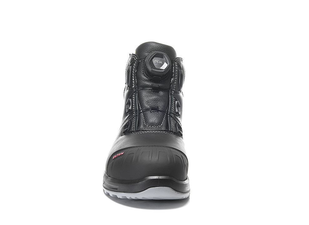 Innovative all-round professional One for lovers of classic foot protection who do not want to do without modern equipment: The REACTION XXT Pro BOA® Mid ESD S3. Equipped with the WELLMAXX TRAINERS outsole, the ESD-compatible safety boot has maximum cushioning thanks to the sole core made of Infinergy® from BASF . The resilient high-tech material means that feet tire less quickly, even on long working days. Breathable textile lining makes the wearing comfort perfect. The BOA® Fit System , which guarantees a quick and precise fit - without any laces, makes everyday work easier . The SRC-certified boot can also convince when it comes to safety. The robust cowhide and the TPU tip protection make it extremely resistant and themetal-free toe cap as well as the flexible metal-free penetration resistance protect the feet from injuries. The indoor and outdoor professional is available in sizes 36 to 48. ELTEN REACTION XXT Pro BOA® Mid ESD S3: