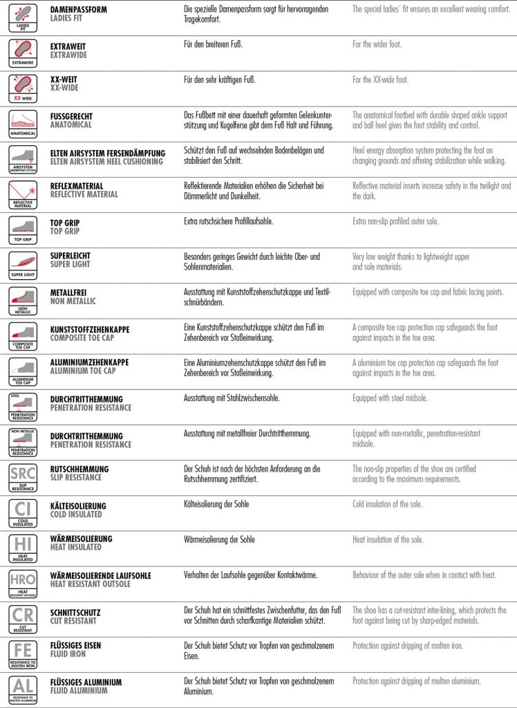 This standard is a supplement to EN ISO 20345. EN ISO 20349 adds protection against heat risks and spray from melted metal so that the shoe meets minimal requirements for founders and welders. Among other requirements, casting boots are particularly tested for their resistance against the effects of melted metal. Shoes that pass the fluid aluminium test receive an “Al”; and those that pass the fluid iron test receive an “Fe”. All the labels known from EN ISO 20345 remain unchanged.